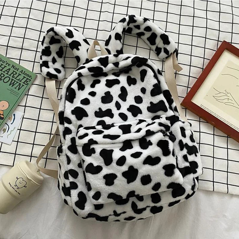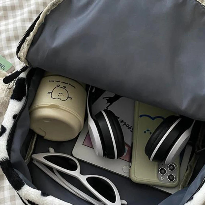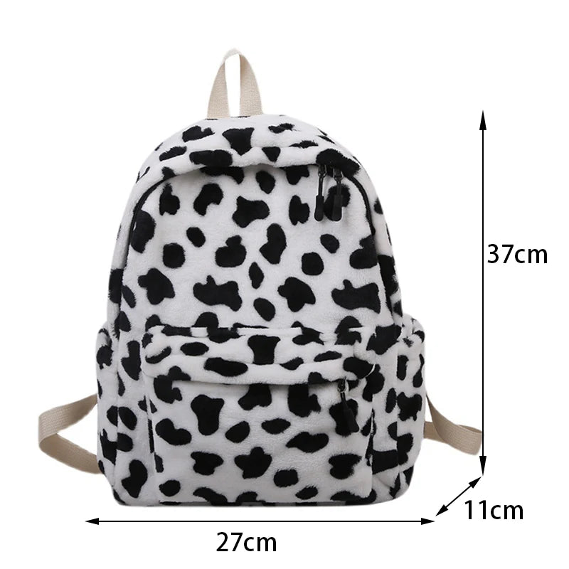 Cow Plush Backpack For Women Large Capacity School Bag