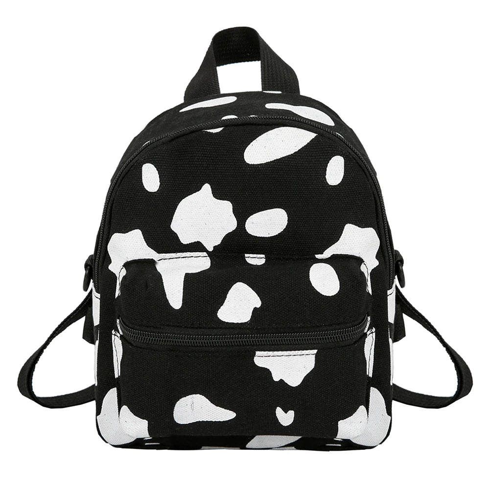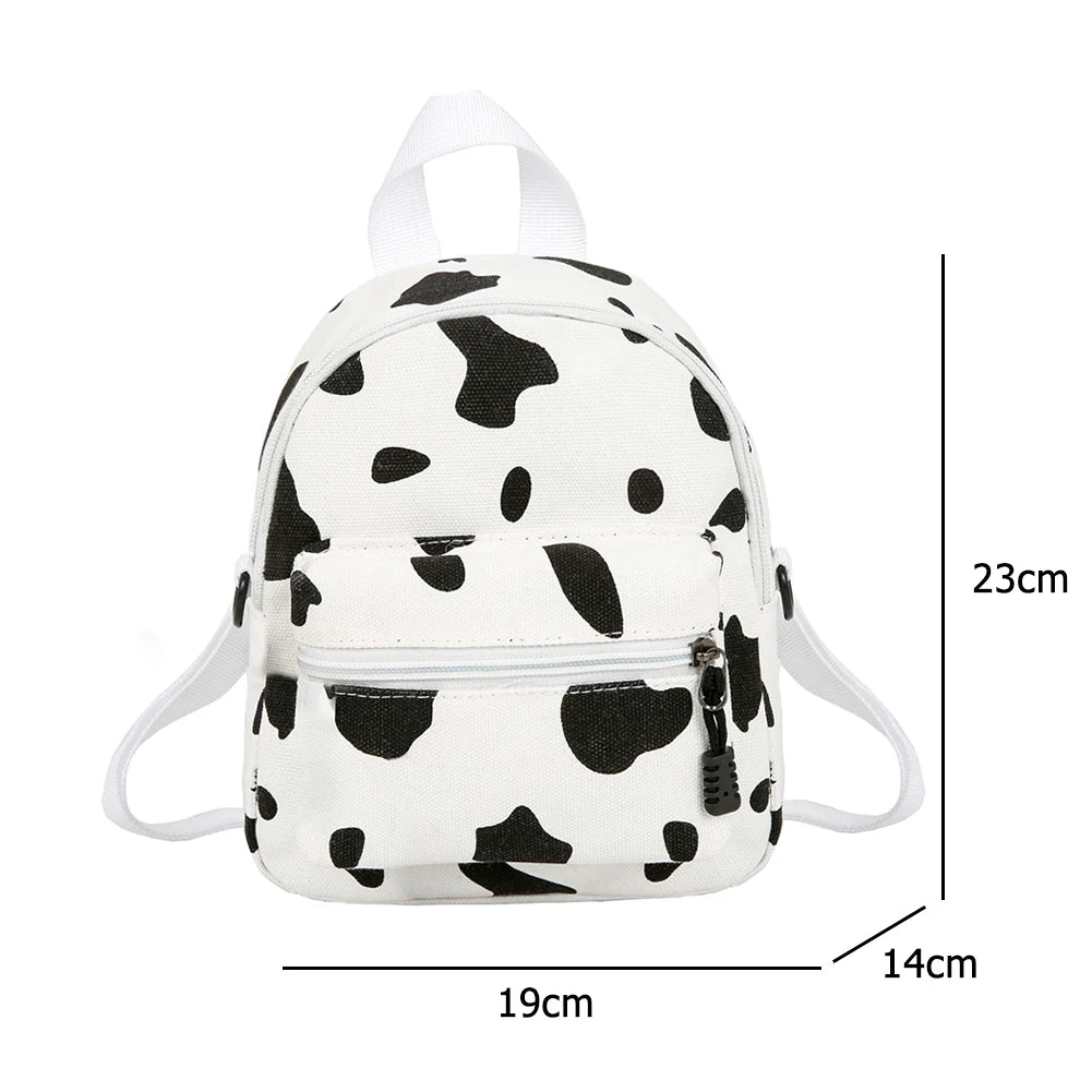 Get ready to make a style statement with this adorable cow print backpack. Perfect for teenage girls, this canvas bag is compact and trendy.
