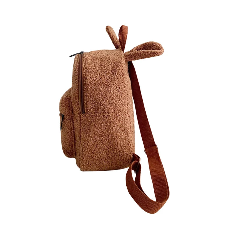 Cute Bunny Ears Fuzzy Rabbit Backpack Plush School Bag for Girls