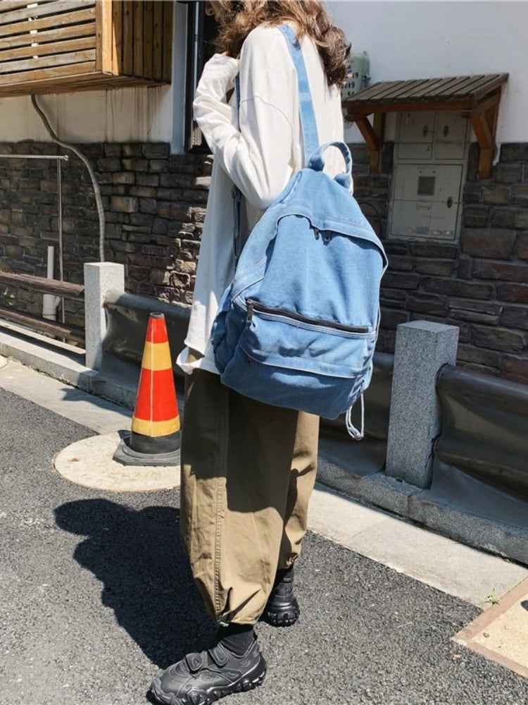 This stylish denim canvas backpack is perfect for teenage girls, offering high capacity and functionality. It is the ideal accessory for school, travel, or daily use.