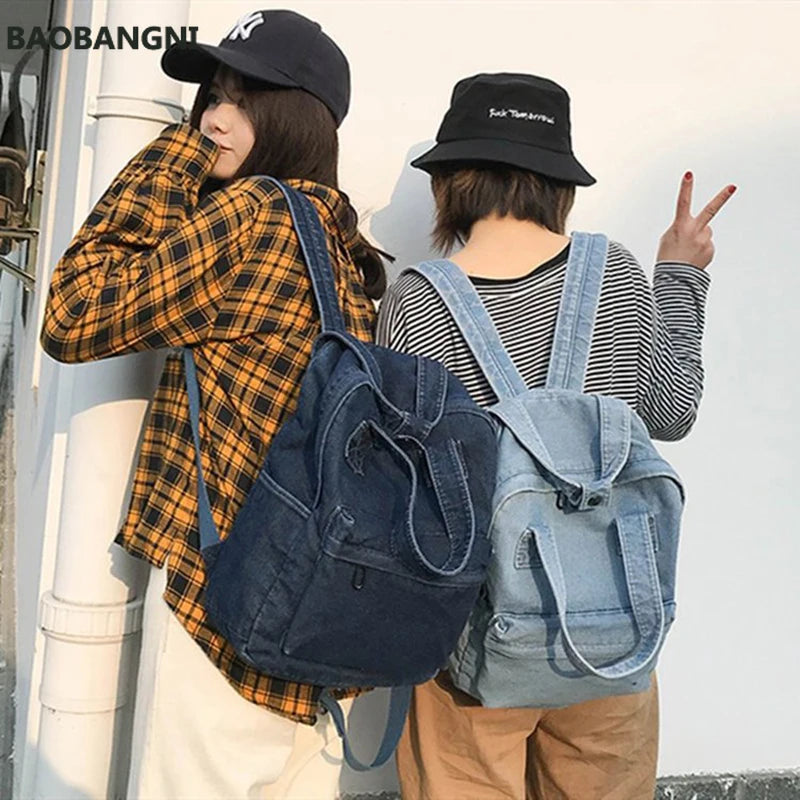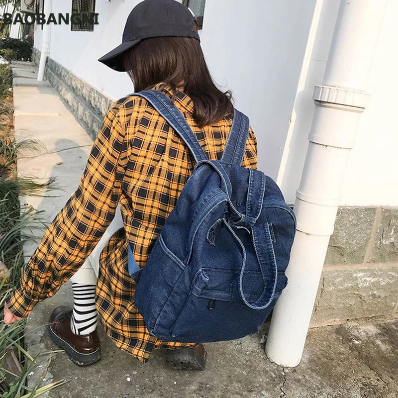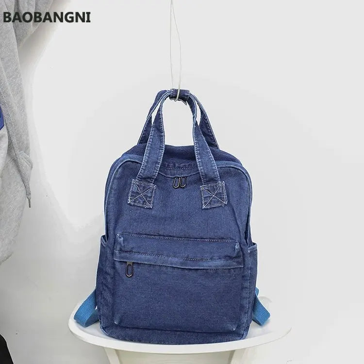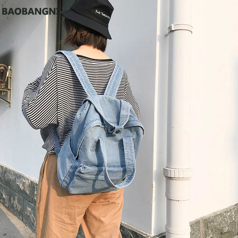 This chic denim backpack is perfect for college students who appreciate literature and art. It's versatile and stylish, making it a great schoolbag option.