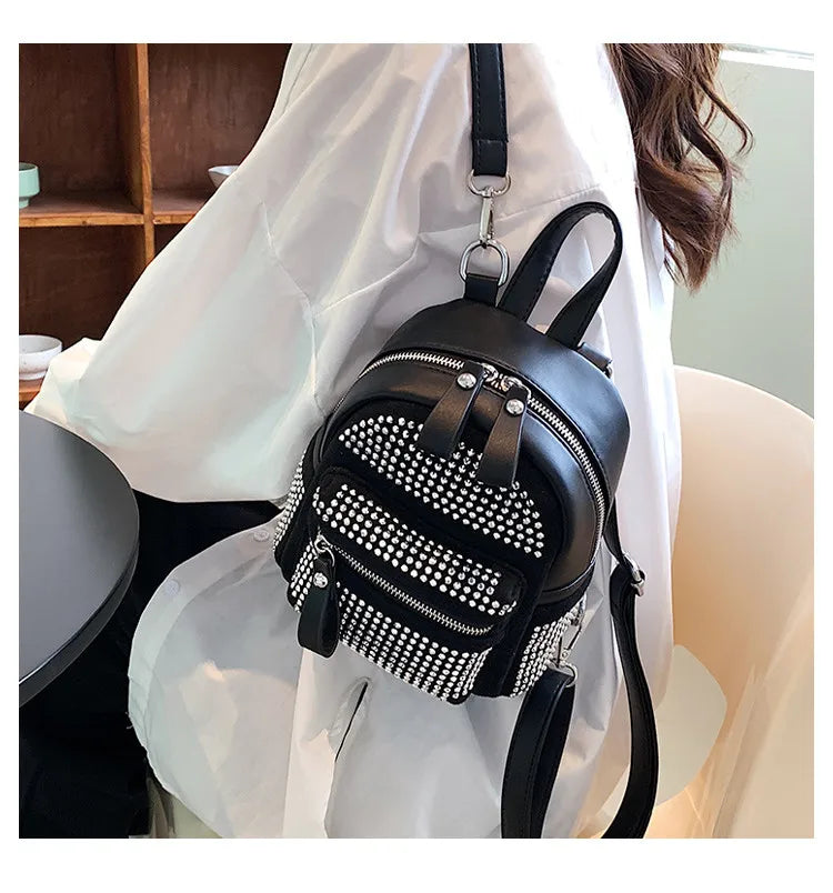 Diamond Women Backpack Small PU Leather Lady Shoulder Crossbody Bags