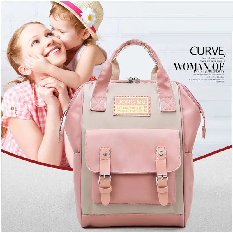 This functional diaper mommy backpack is designed for women on-the-go. It has a large capacity, waterproof material, and features an insulation compartment for bottles. Perfect for travel and everyday use.