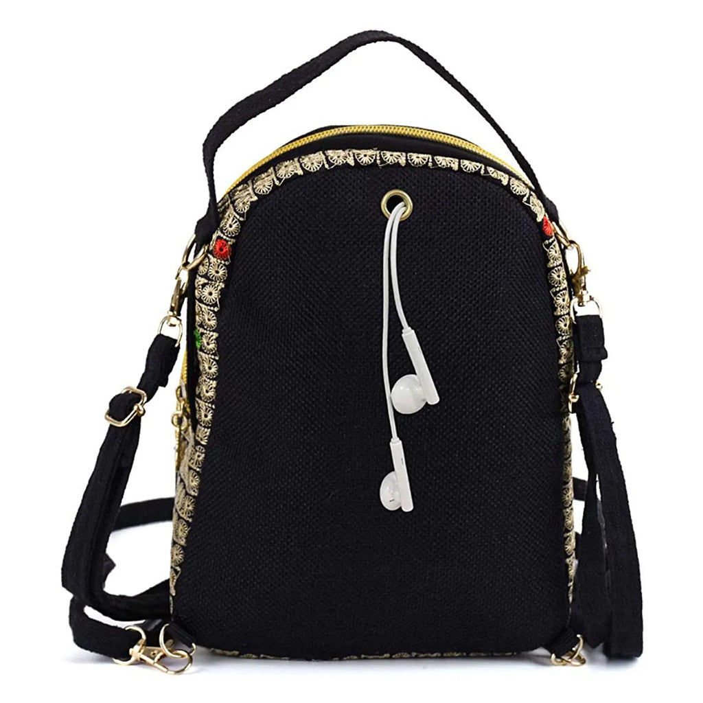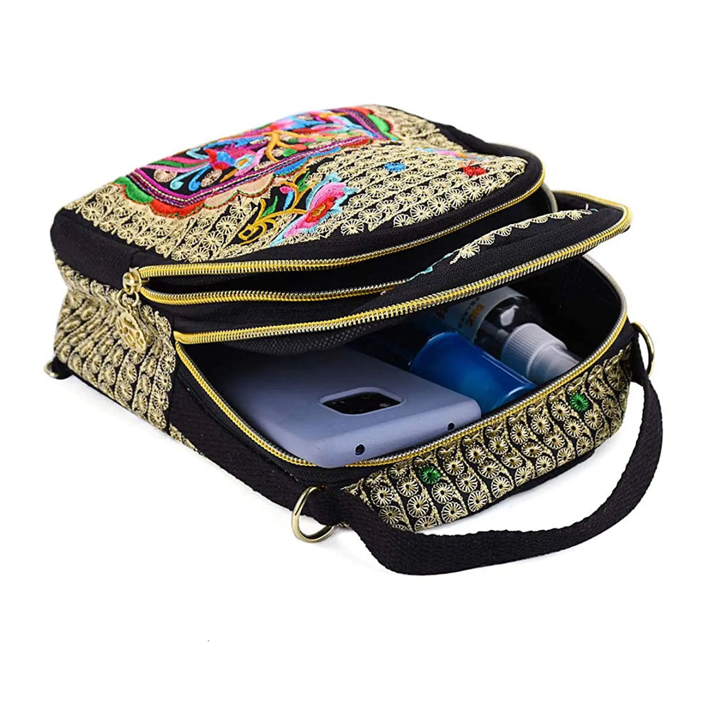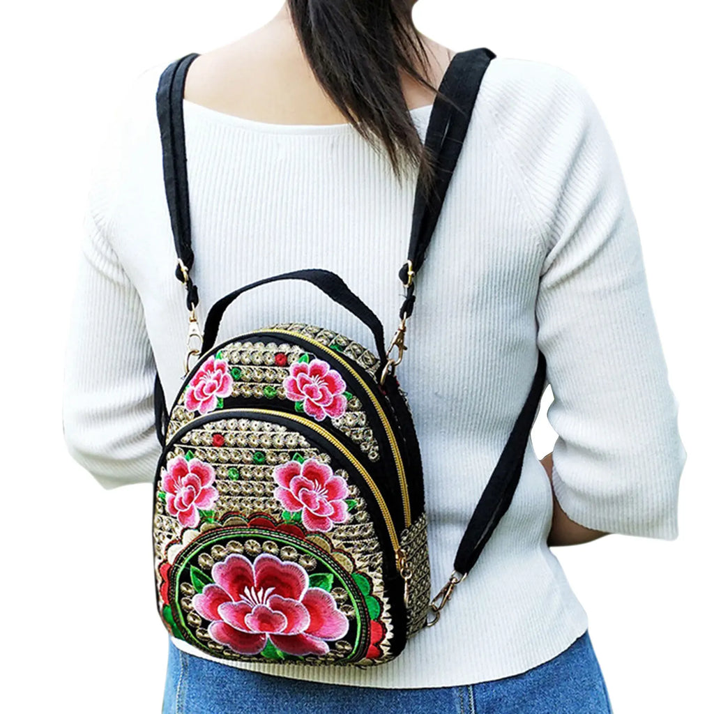 Embroidered Mini Backpack Vintage Flower Travel Shoulder Bag