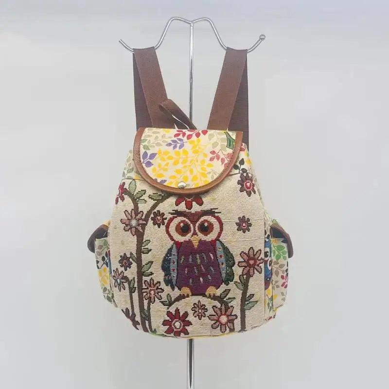 This canvas backpack features an adorable embroidered owl design, making it a perfect accessory for travel and everyday use.
