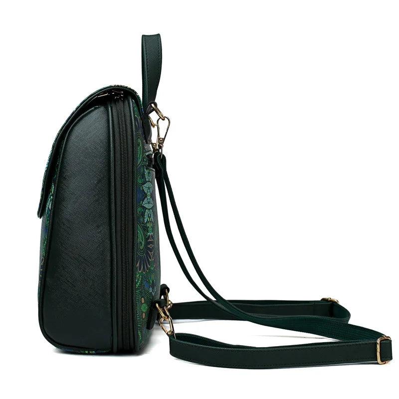 This backpack features a stylish cartoon print design that is perfect for teenage girls. It is made of high-quality PU leather and can be used as a shoulder bag or rucksack.