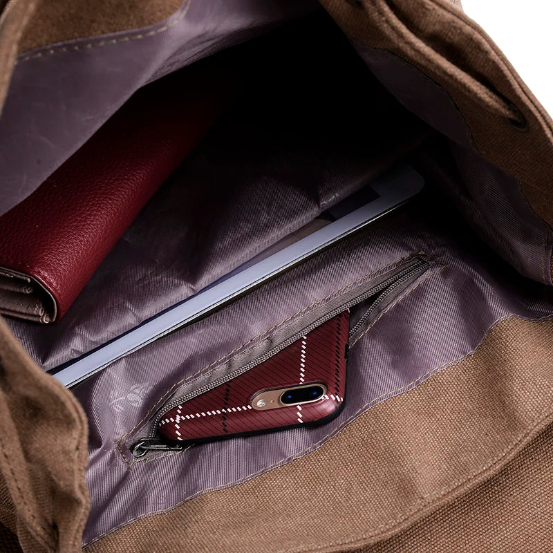 This women's canvas backpack is perfect for school, college, or everyday use. It features a preppy and stylish design suitable for girls and ladies. The bag is spacious enough to accommodate a laptop and other essentials.
