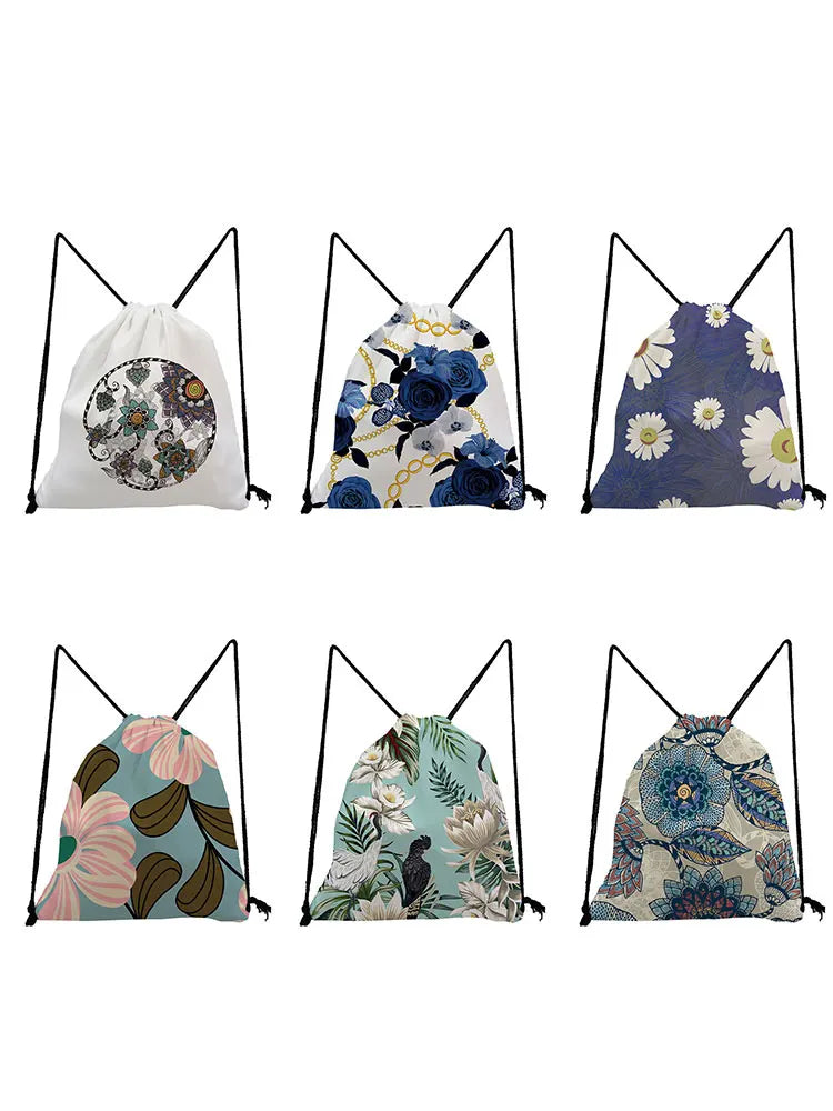 Floral Drawstring Backpack Gym Bag Women Swimming Travel Storage Bag