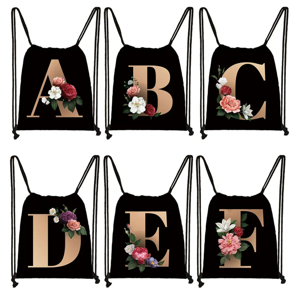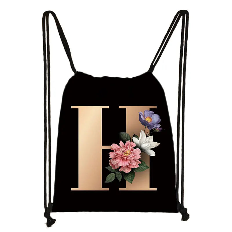 Floral Letters Backpack Women Shoulder Bags Drawstring Bag