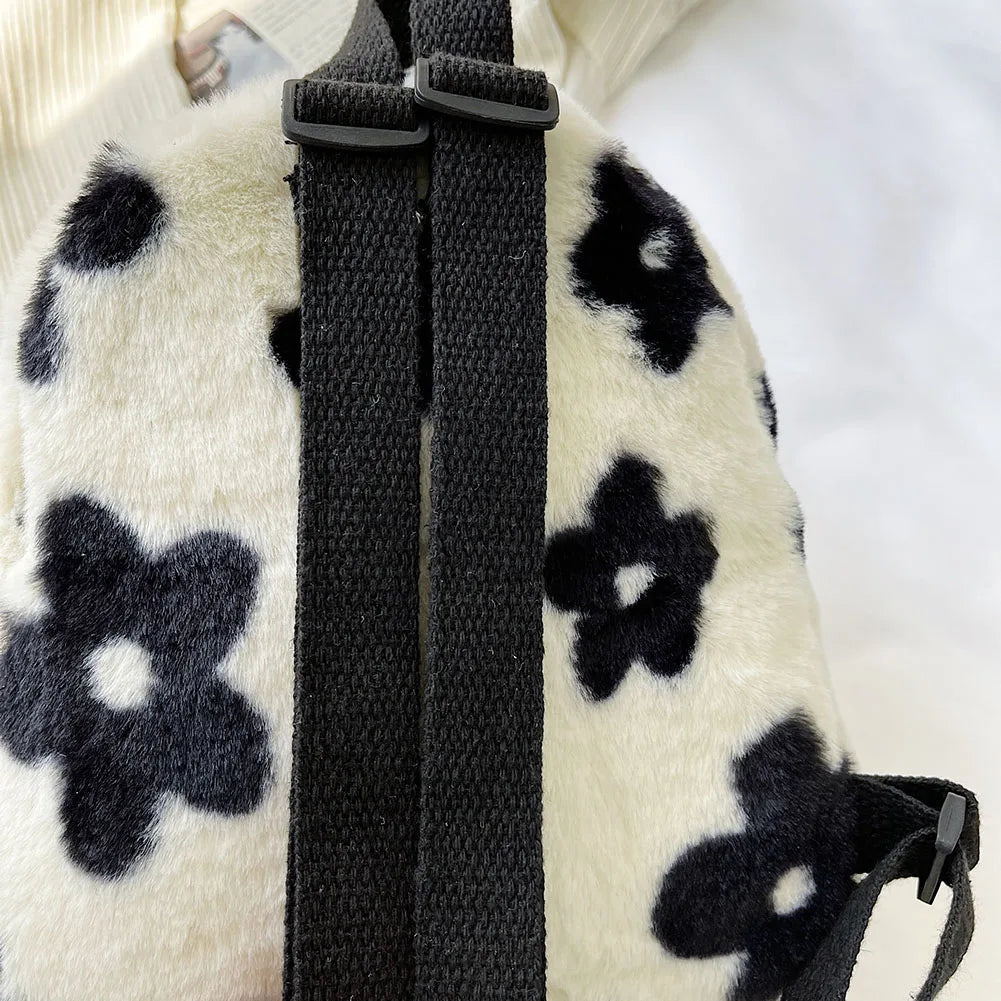 Floral Mini Backpack Schoolbag Women Casual Plush Rucksack