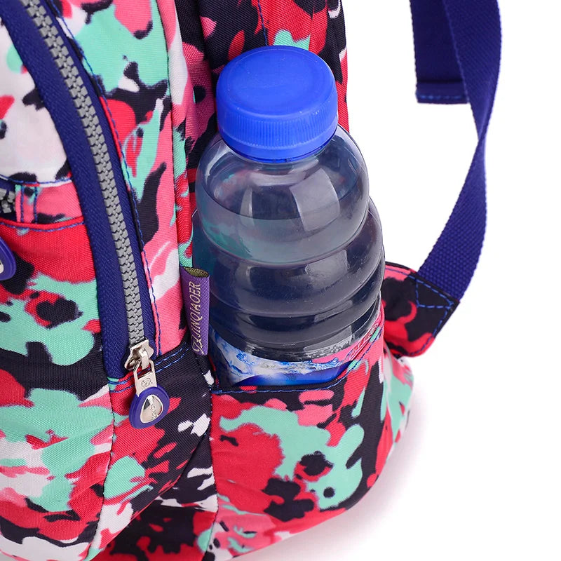 Floral Nylon Backpack Women Bag School Rucksack Bolsa