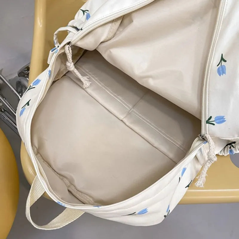 This travel backpack is perfect for ladies and girls. It features a beautiful floral print design, making it a stylish choice for school or college.