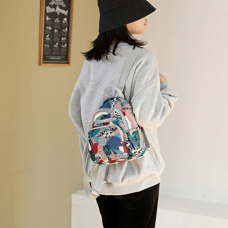Floral Print Nylon Travel Bagpack Phone Purse Rugzak Mini Backpack for Girls