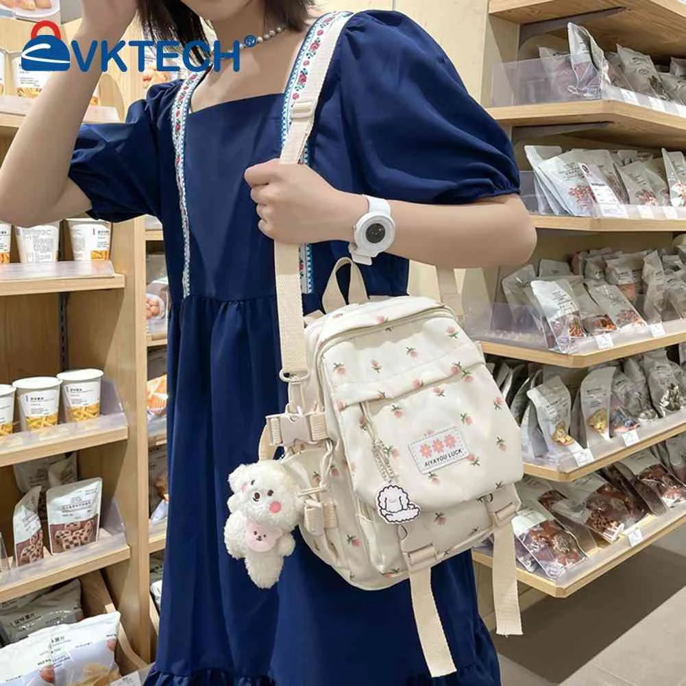 This multi-purpose backpack with a floral pendant is a stylish and practical choice for school students. It can also be used for casual outings.
