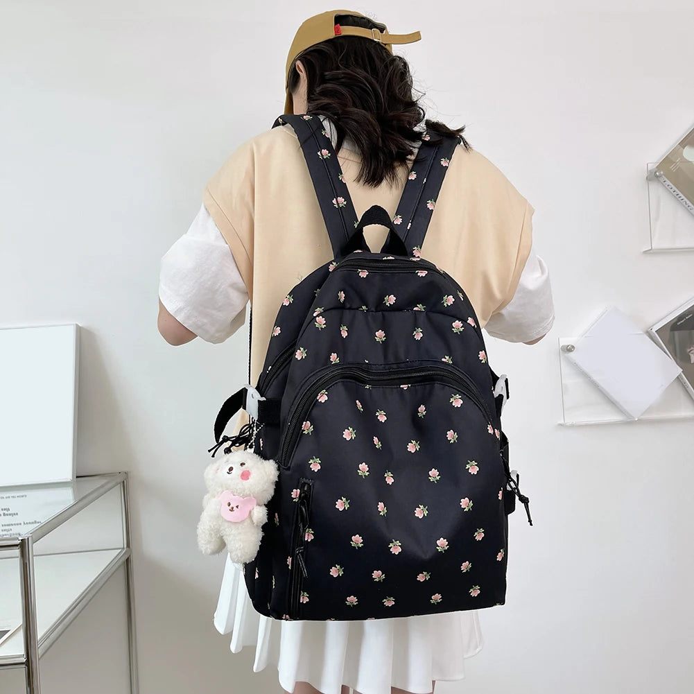 Floral Women Backpack Nylon Schoolbag College Teenage Girl Travel
