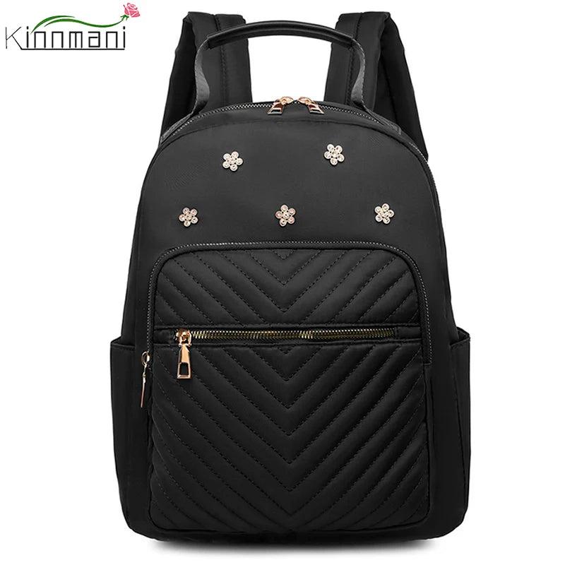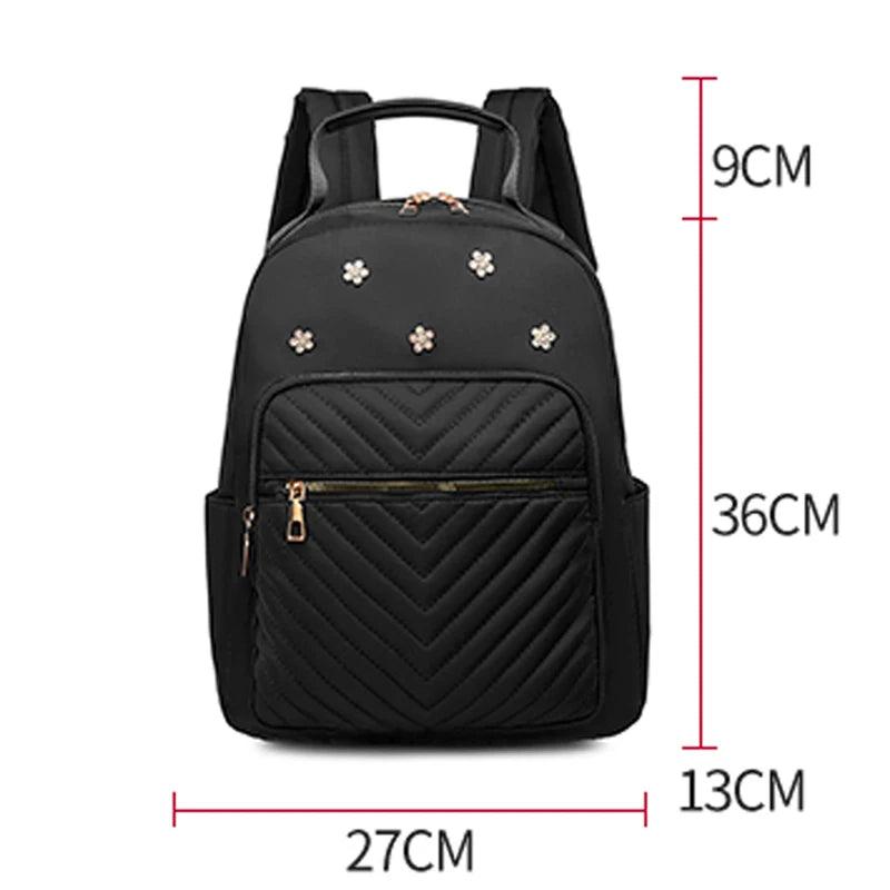 This stylish women's backpack features a floral leather design with rhombus patterns, perfect for school or everyday use.