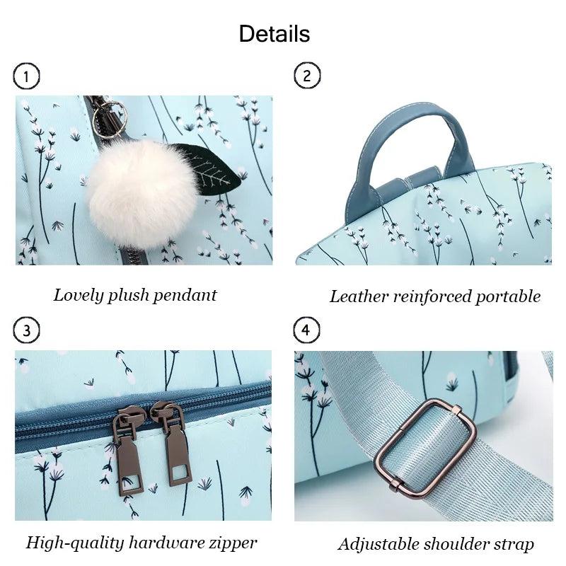Flower Print Women Backpack Anti-theft Casual School Bag High Capacity