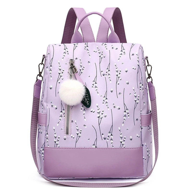 This stylish backpack is perfect for women and girls. It features a beautiful flower print design, making it a fashionable choice for school, travel, or casual outings.