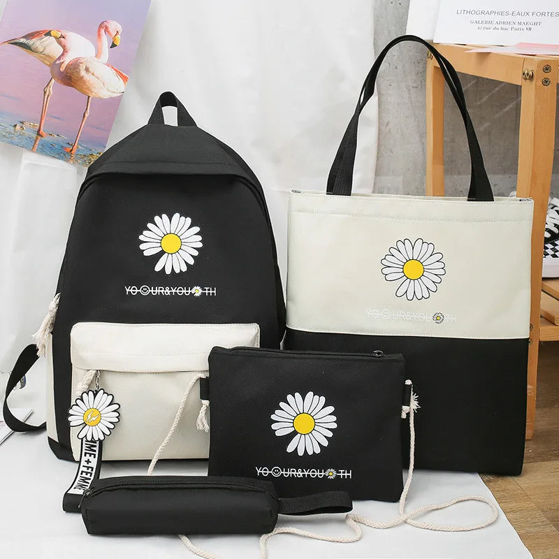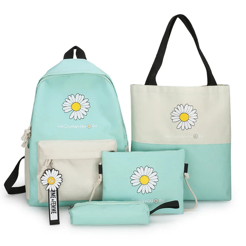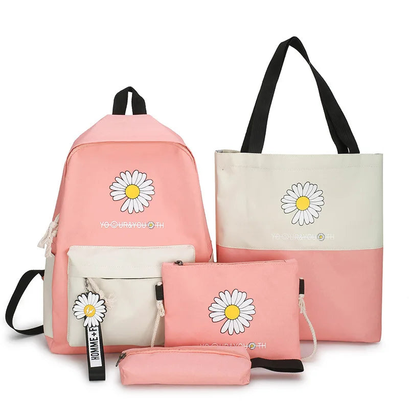 This 4-piece set features stylish flower prints on durable canvas backpacks, perfect for teenagers and students. Ideal for school, travel, and daily use.