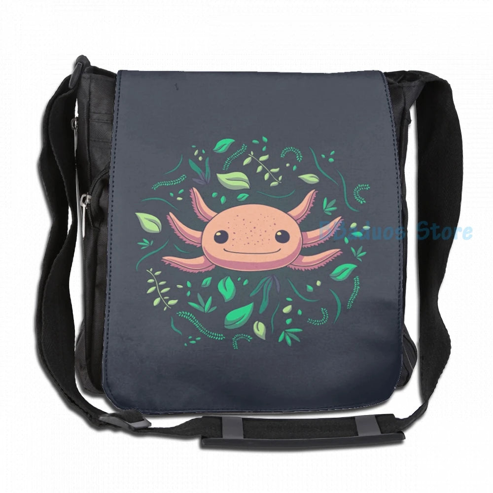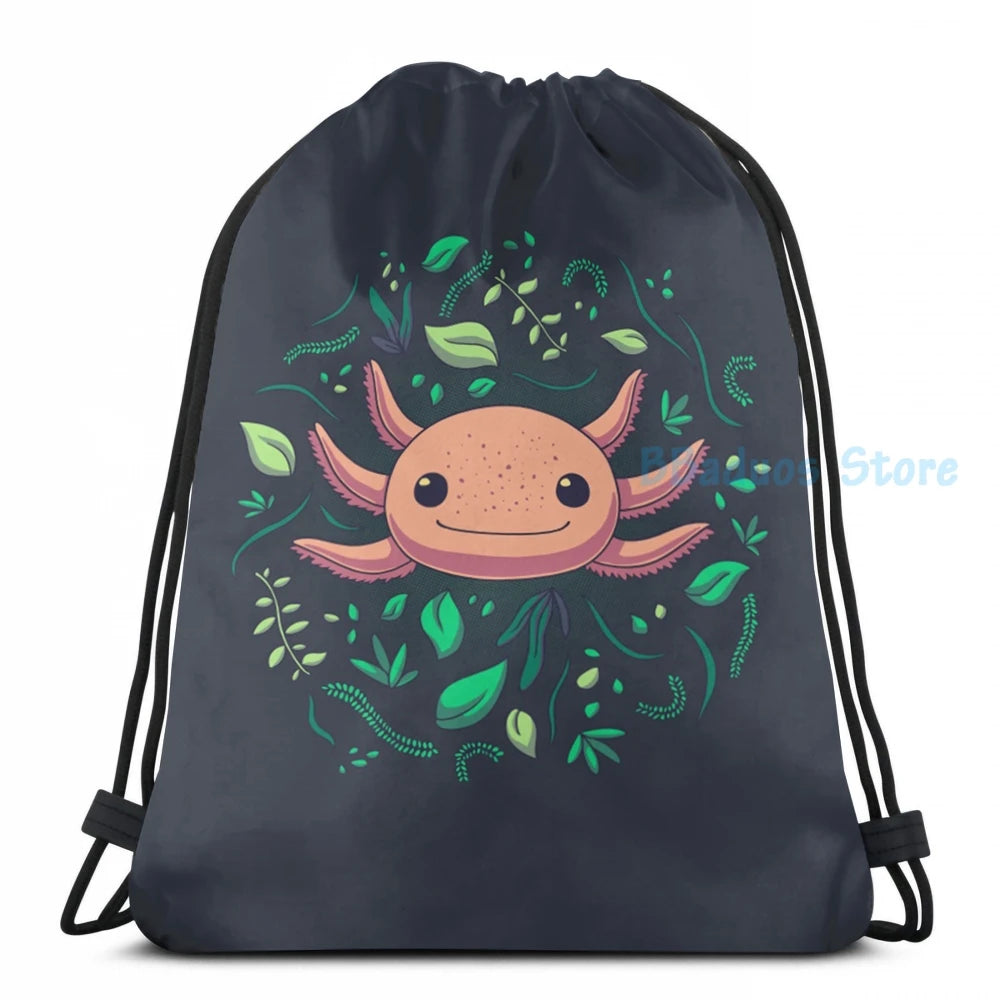 This backpack features a cute axolotl graphic print surrounded by plants, making it perfect for school, work, or travel. The USB charging port adds convenience for charging devices on the go.