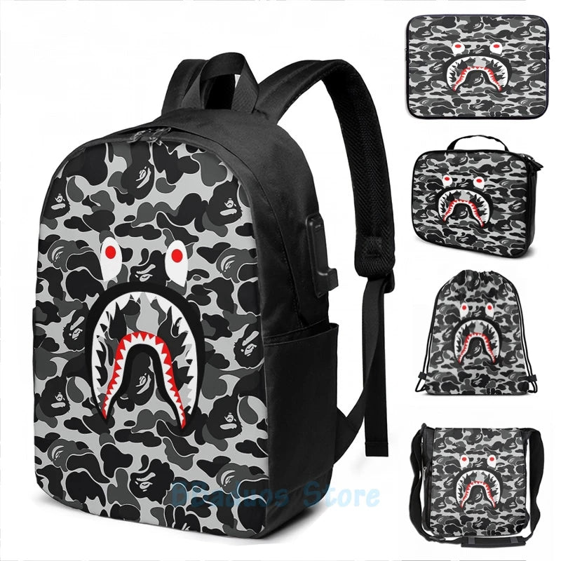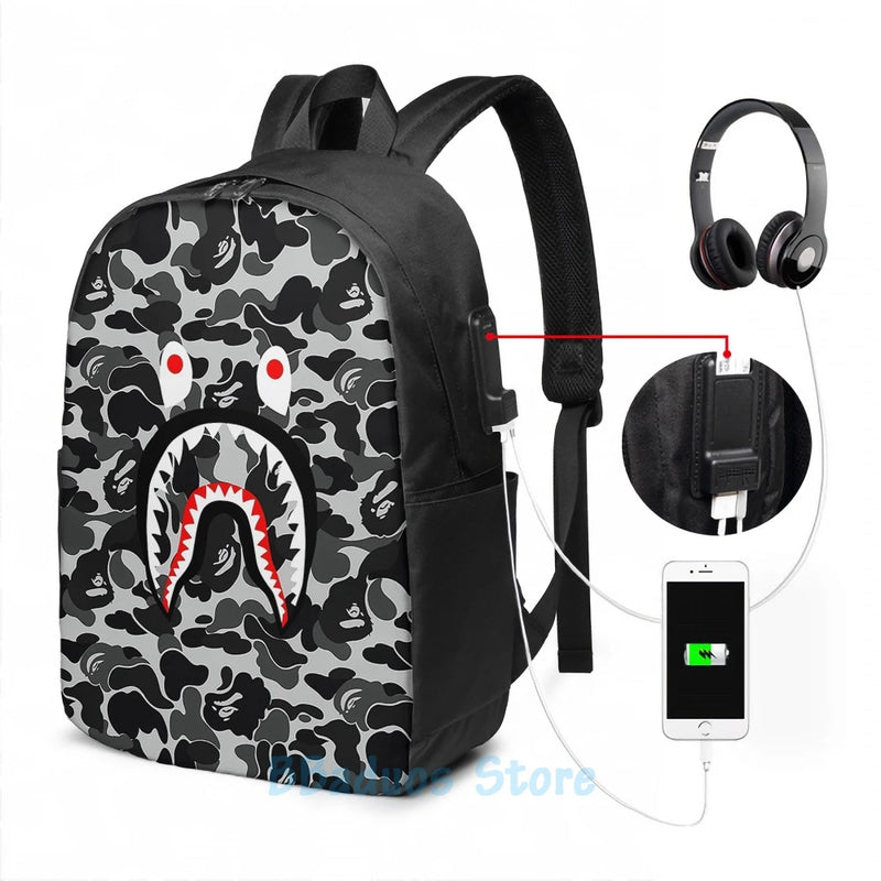 Funny Camo USB Charge Backpack School Bag Travel Laptop Bag