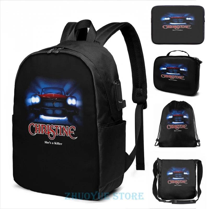 Funny Car Christine USB Charge Backpack School bags Travel laptop bag