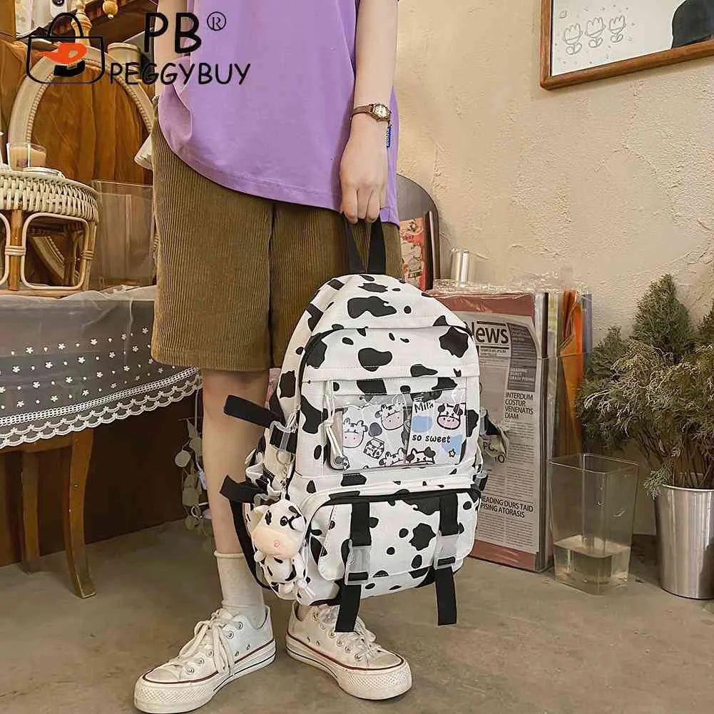 Stay stylish and organized with this cow print canvas backpack designed for ladies and girls. Its large capacity makes it perfect for college or everyday use.