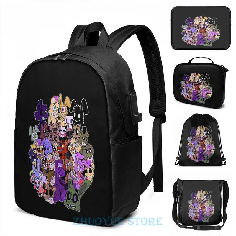 Funny FNAF USB Charge Backpack School Travel Laptop Bag