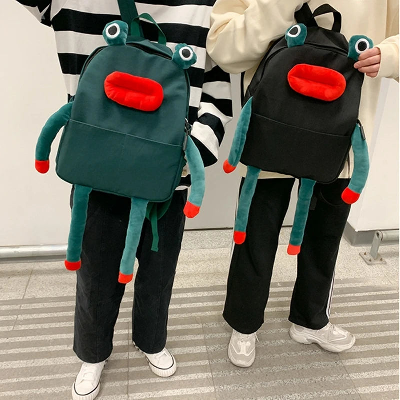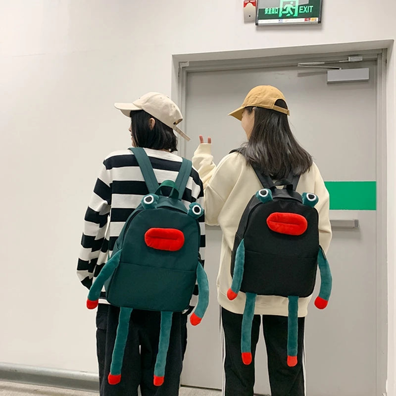Funny Frog Backpack for Women, Cute Ugly Cartoon Student School Bag