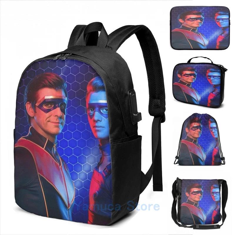 Funny Graphic Captain Man and Kid Danger USB Charge Backpack
