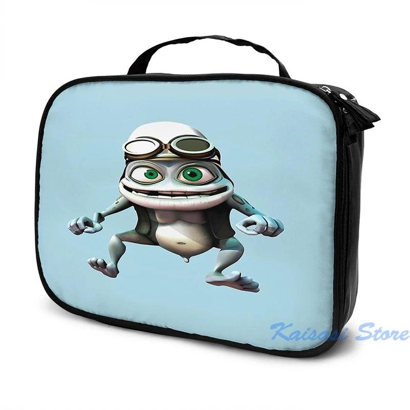 This backpack features a hilarious crazy frog graphic print and comes with a USB charging port for convenience. Perfect for students or travelers.