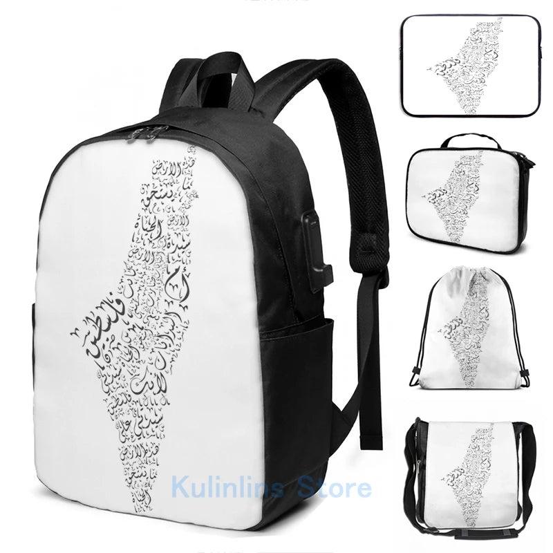 Description:Unique and stylish backpack featuring a humorous graphic print map design with a Mahmoud Darwish poem. It comes with a USB charging port for convenience during travel.Features: Durable and high-quality material construction Spacious compartments for easy organization Comfortable padded shoulder straps for all-day wear Ideal for school, work, or travel...