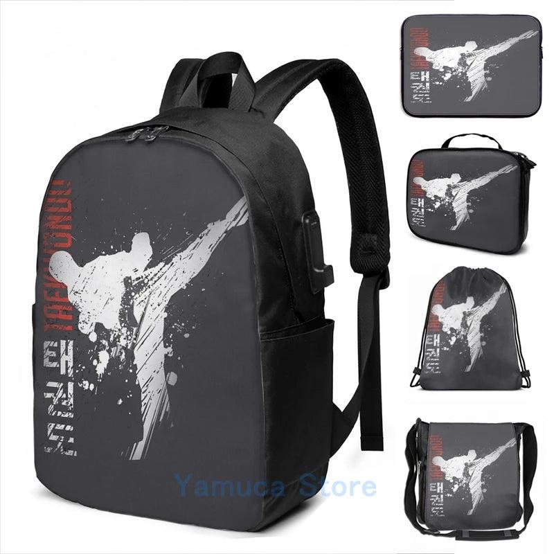 Funny Graphic Taekwondo USB Charge Backpack Men Women School Travel Laptop Bag