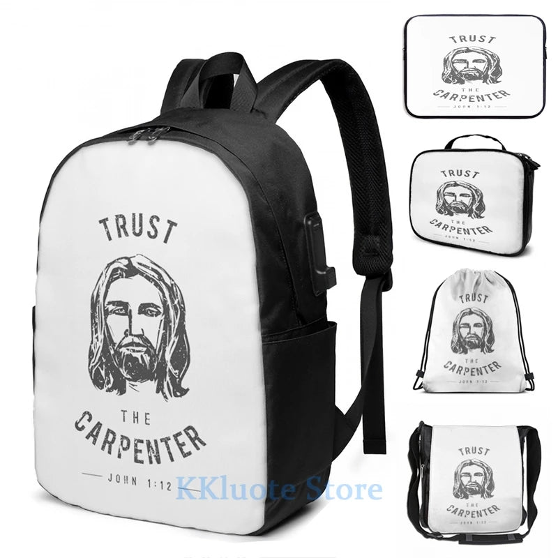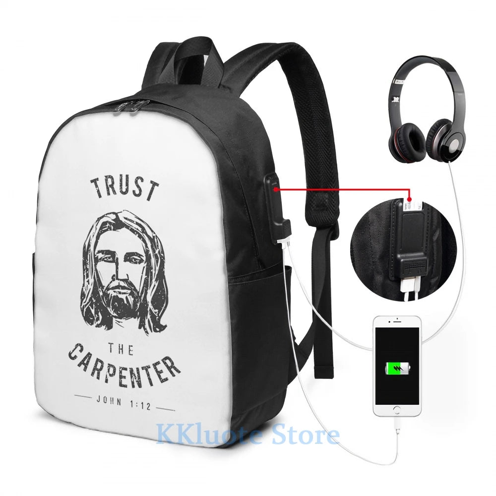 Funny Graphic Trust the Carpenter Jesus Christ USB Charge Backpack