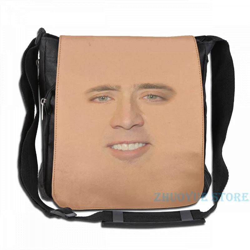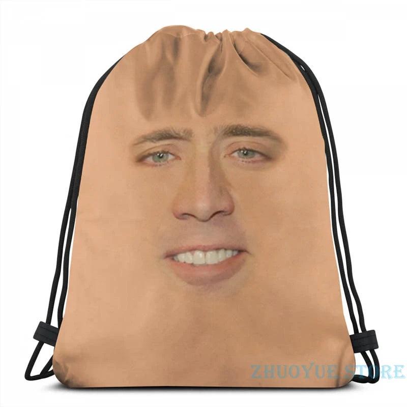 Stay charged and stylish with this hilarious Nicolas Cage backpack featuring a full face graphic print. Perfect for school, work, or travel.