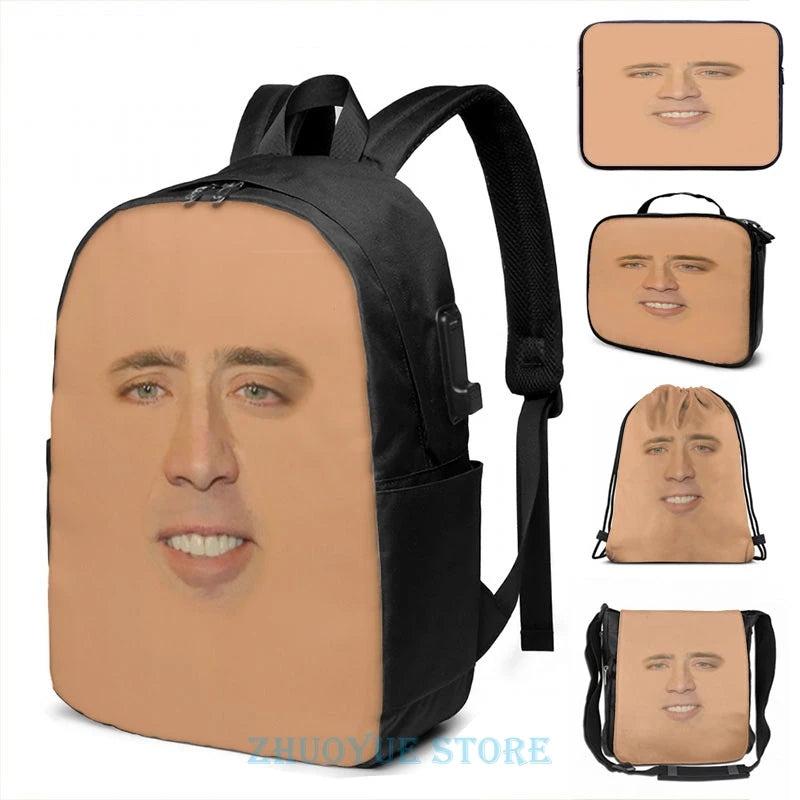 Funny Nicolas Cage USB Charge Backpack Full Face Graphic Print