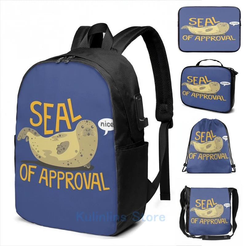 Funny Seal of Approval USB Charge Backpack Men Women Travel Laptop Bag