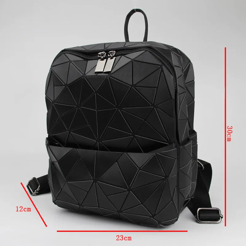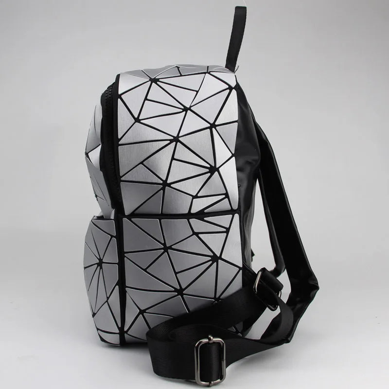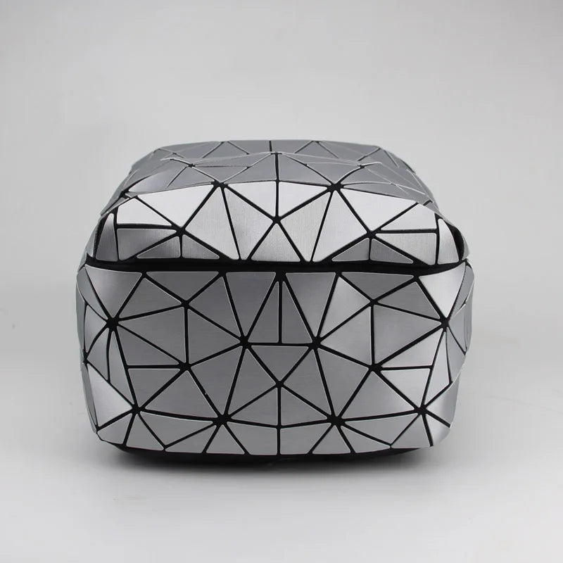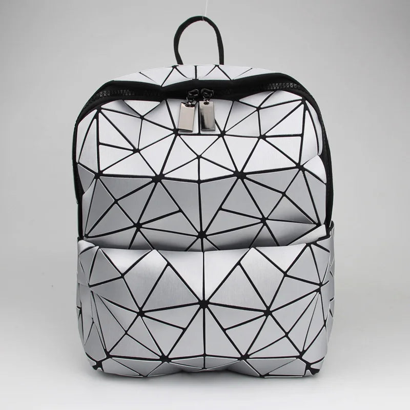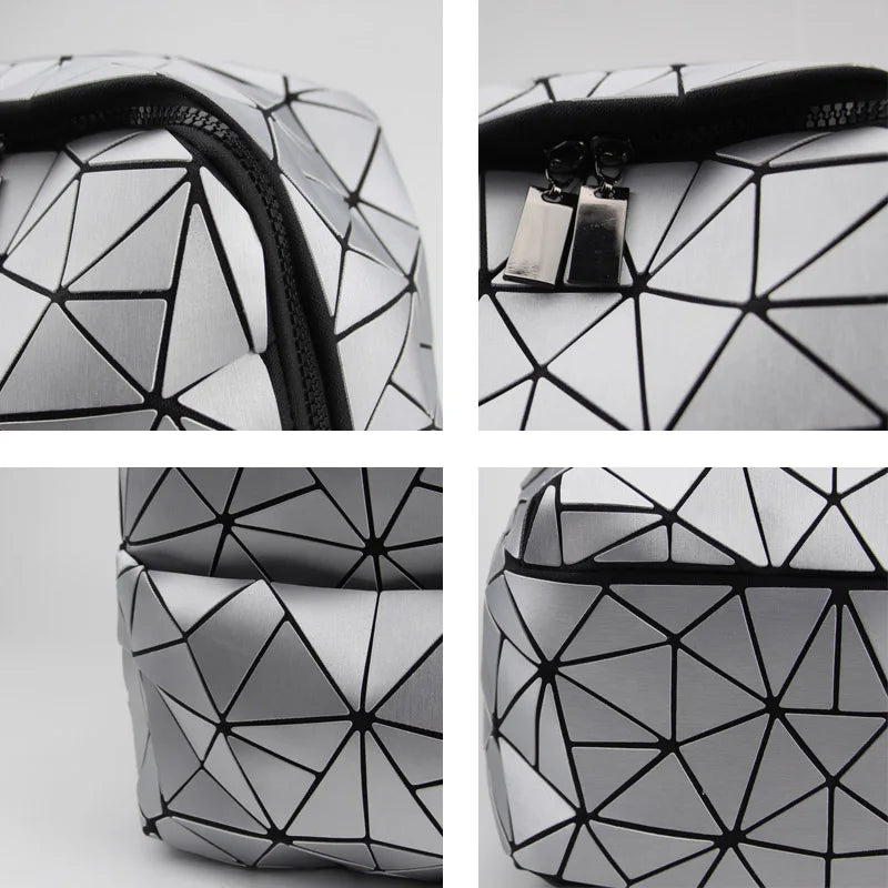 Geometric Patchwork School Backpack for Teenage Girls - Holographic