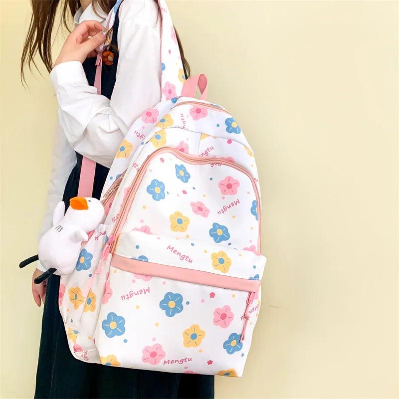 This school backpack is designed for girls with a cute cartoon pattern. It is suitable for college students, teenagers, and casual female students.