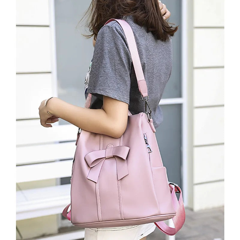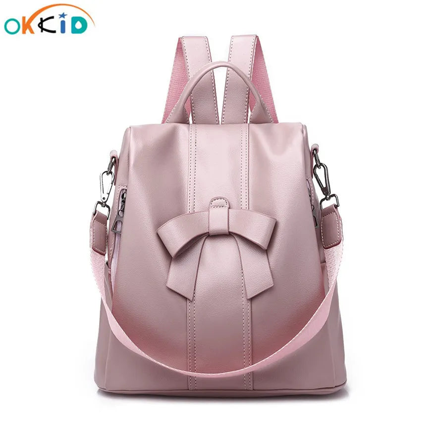 Girls Pink Leather Backpack Women Shoulder Bag Anti Theft Travel