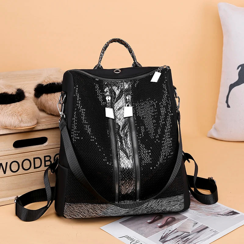 Stay stylish and organized with this durable pink backpack made of waterproof Oxford fabric.
