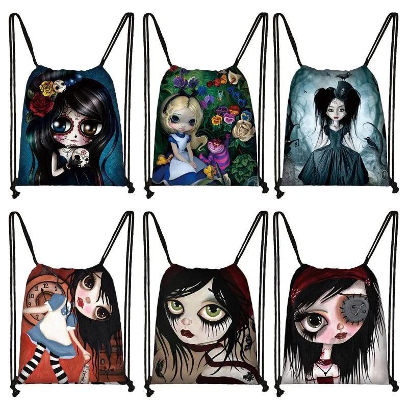Gothic Cartoon Girl Drawstring Bag Casual Backpack Women