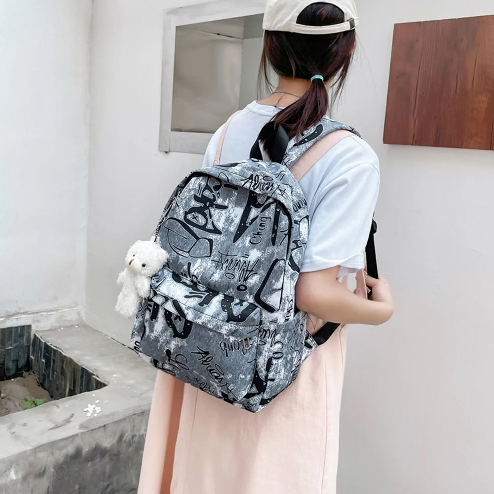 Graffiti Butterfly Print School Backpack for Teen Girls