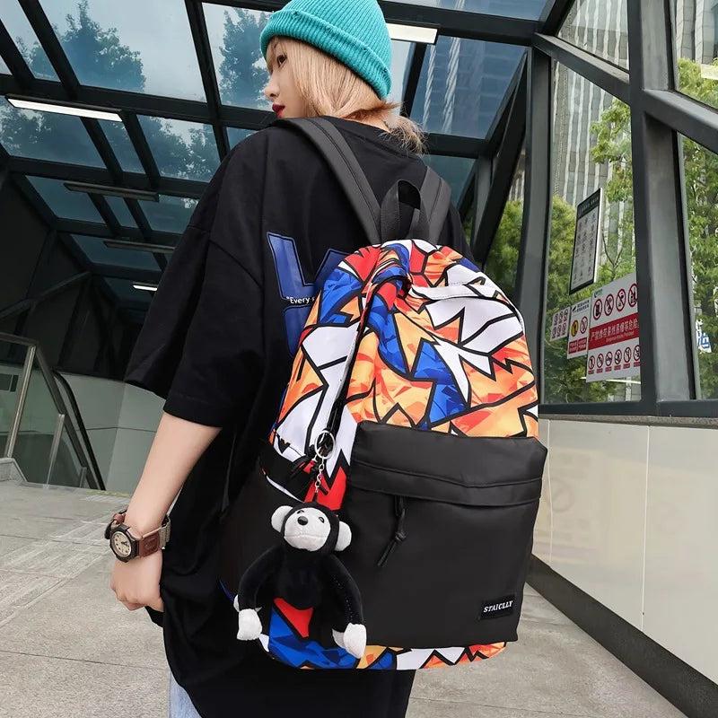 This Harajuku backpack is perfect for students and travelers. It is made of durable nylon and features a laptop compartment.