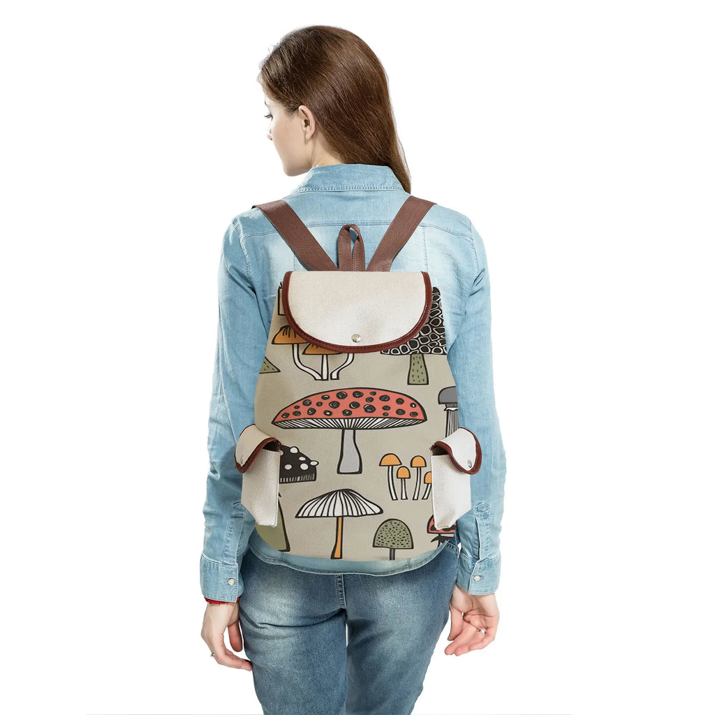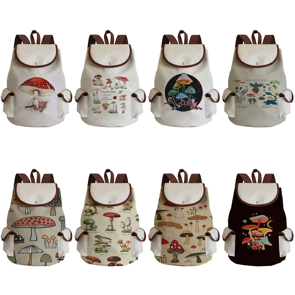 Harajuku Mushroom Linen Drawstring Backpack