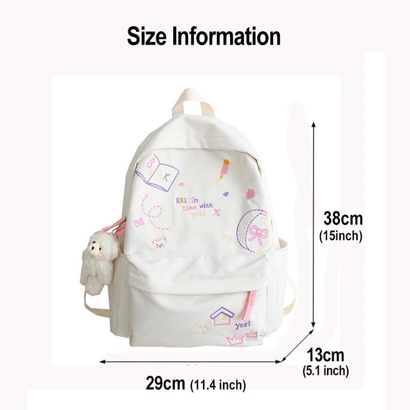 This Harajuku student backpack is made of waterproof nylon, perfect for girls on-the-go. It offers a large capacity and is ideal for travel.
