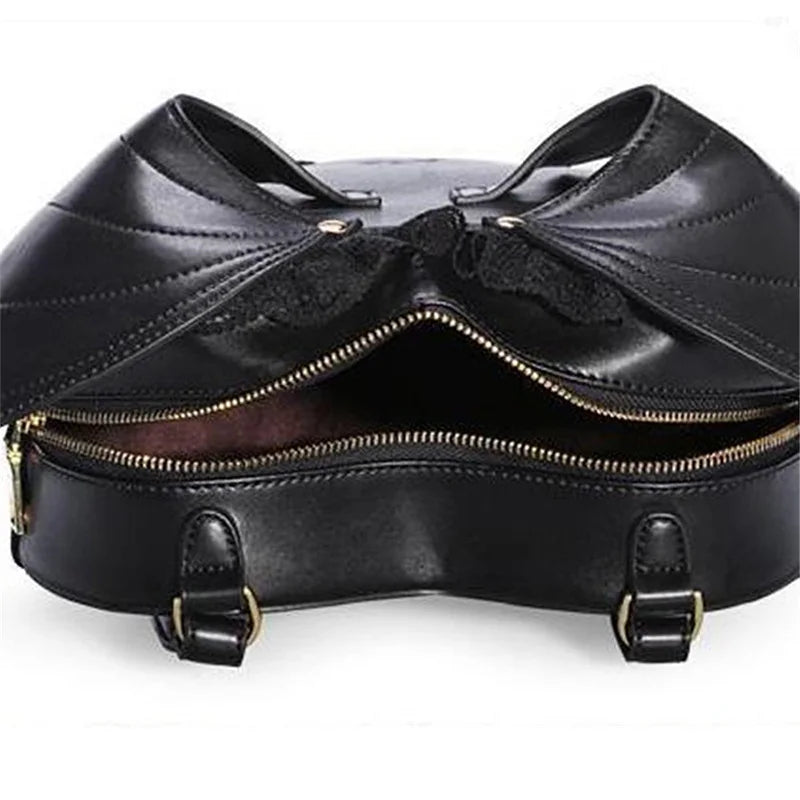 This leather backpack features a unique heart-shaped bat design with angel wings, perfect for a trendy and punk look. Ideal for teenagers and students for school or casual use.