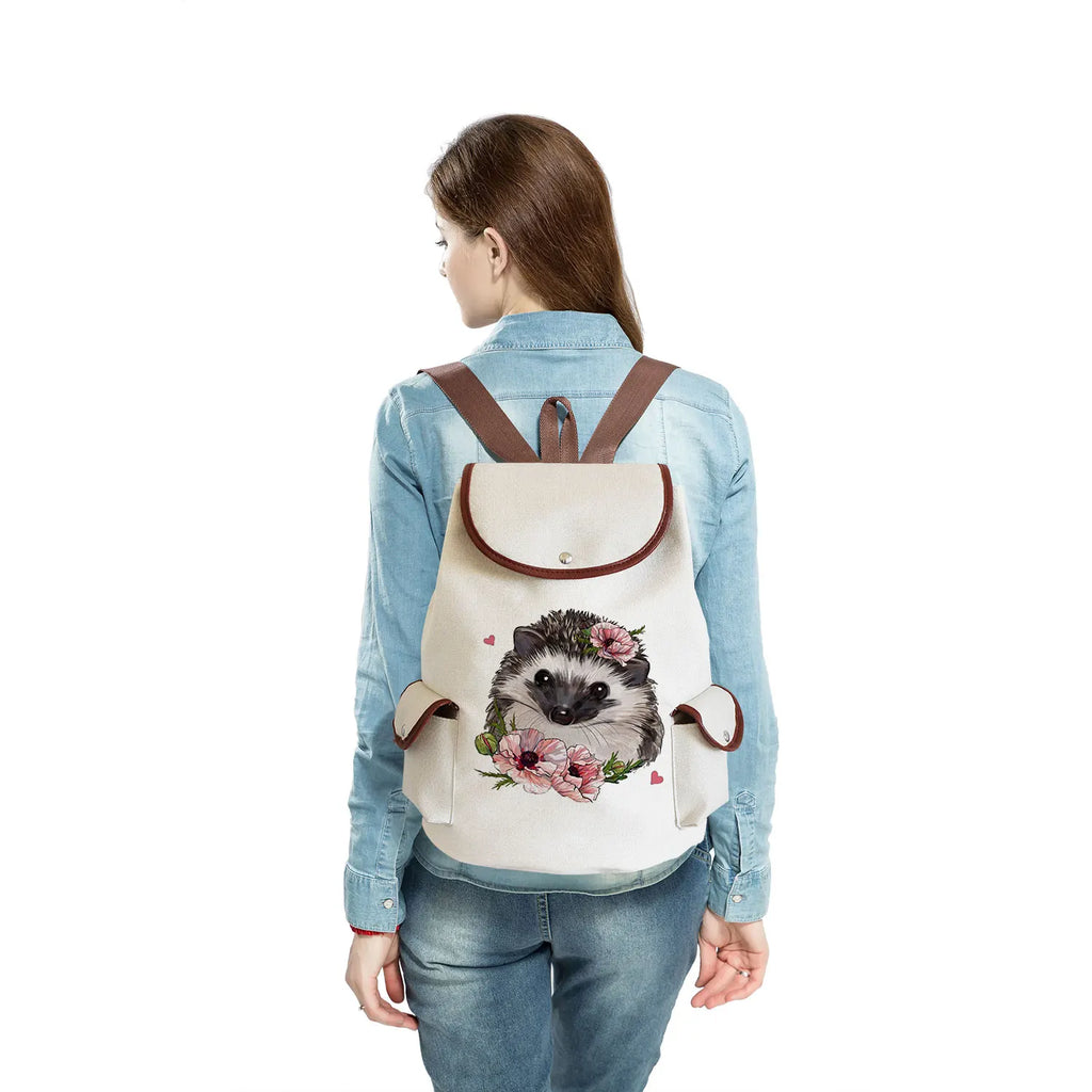 High Capacity Student Backpack Drawstring Bag Casual Portable Hedgehog Flower