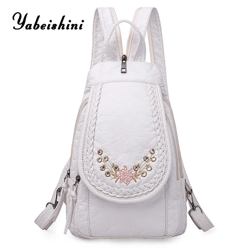 High Leather Backpack for Women School Bag Teenage Girls Female Travel