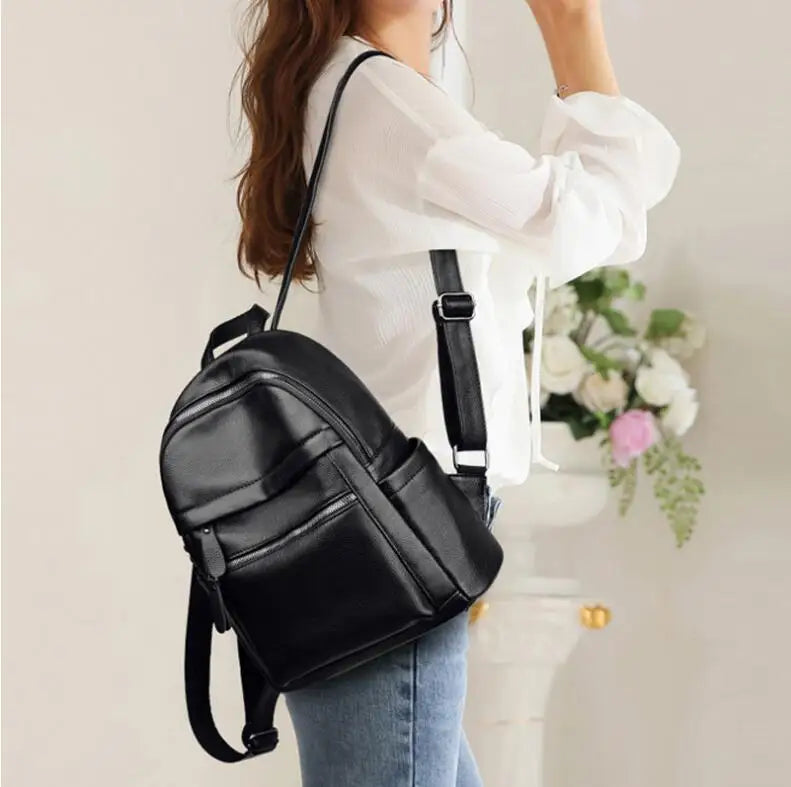 Stay stylish and organized with this high-quality PU leather backpack. Perfect for travel, school, or everyday use. Features adjustable shoulder straps for a comfortable fit.